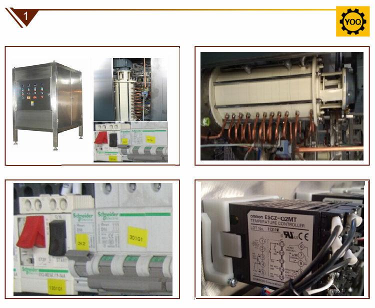Le régulateur de température au chocolat est conçu selon les caractéristiques du beurre de cacao naturel et de l'équivalent beurre de cacao (CBE). Il est en structure verticale, la masse de chocolat est alimentée à partir du fond par la pompe à chocolat, puis traverse quatre zones de réglage de la température et une zone de maintien de la température, puis sort par le haut de la machine. Après ce processus, le produit au chocolat sera bien cristallisé avec un goût lisse, une bonne finition et une durée de conservation plus longue.